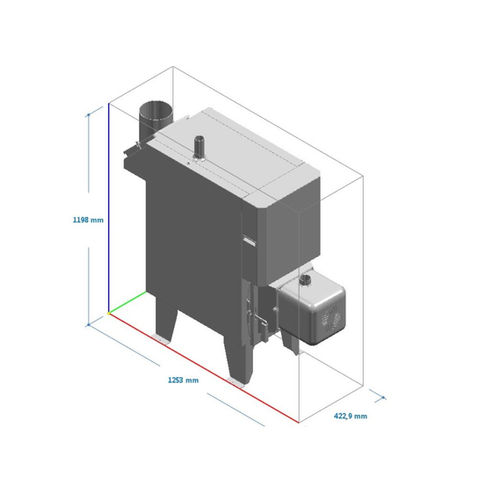 Pannans konstruktion består av svetsad stålplåt med en horisontell rörvärmeväxlare. Tjockleken på pannans inre vägg är 5 mm. Den automatiska tändningsutrustade brännaren är placerad i den nedre dörren för enkel rengöring av pannan och brännaren. Brännaren innehåller 2 skruvtransportörer. Den första tar bränsle från tanken och den andra doserar det senare till förbränningskammaren, samtidigt som den blandar bränslet i förbränningsutrymmet, vilket möjliggör förbränning även av mindre kvalitativa pellets.